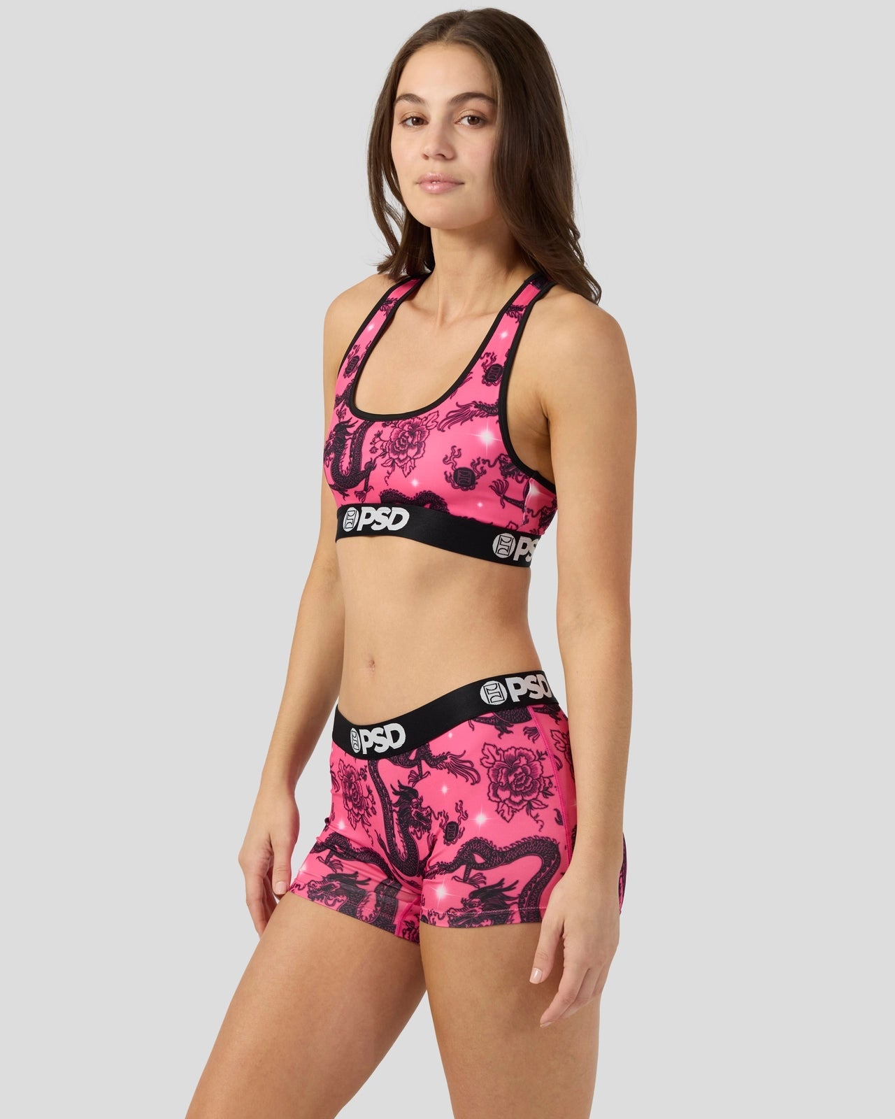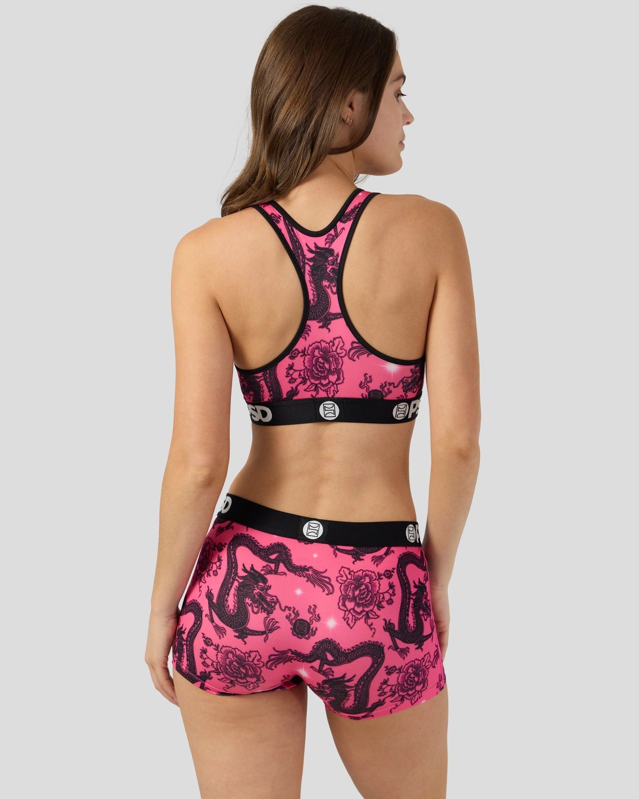 With a tattoo-inspired print. the Airbrushed Dragon Sports Bra is made from a silky poly blend and is breathable yet slightly compressive. bringing you the comfort and support you need for everything you get into.