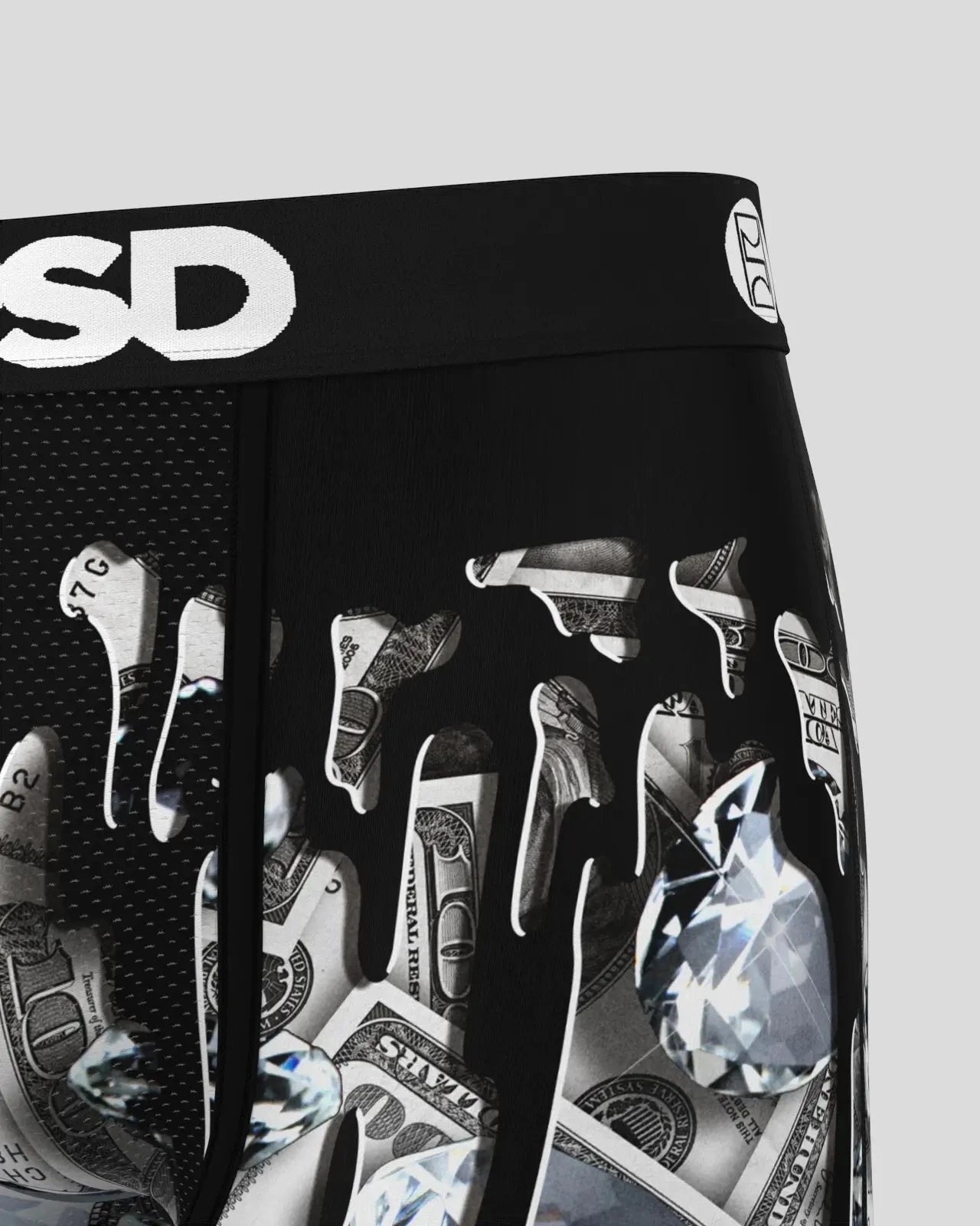 The Cash Drip briefs include our ultra-comfortable Signature WaistBand. a breathable MicroMesh pouch. and four-way stretch. The PSD 7 Standard Length Briefs won’t roll or ride and were built for everything. from everyday wear to your toughest workouts.