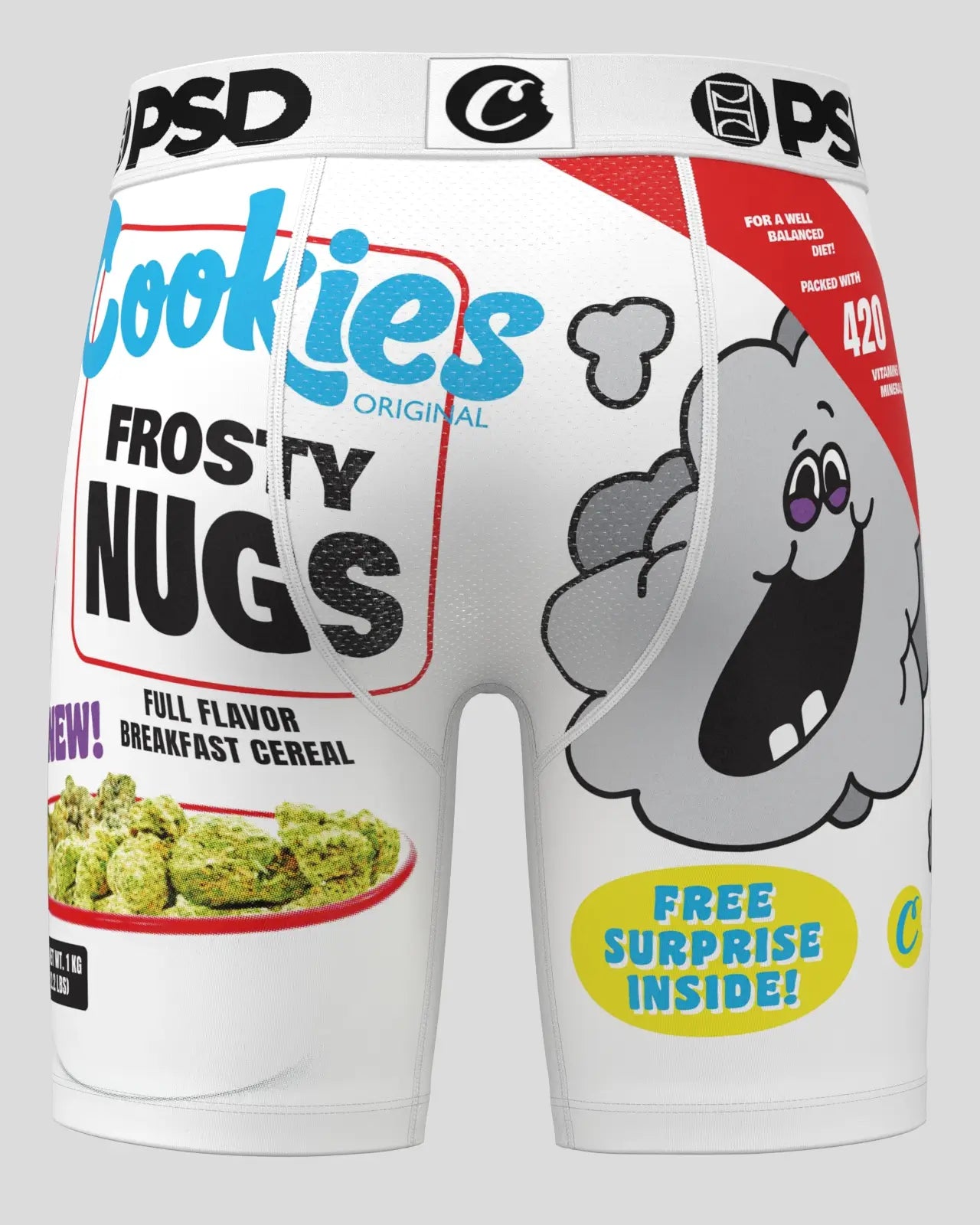Like your favorite breakfast cereal but so much better. the newest drop from Cookies x PSD is full of earthy flavor. The Frosty Nugs boxer briefs feature four-way stretch. a breathable MicroMesh pouch. and durable flatlock stitching. The PSD 7 Standard Length briefs were made for everything. from everyday wear to the toughest workouts.