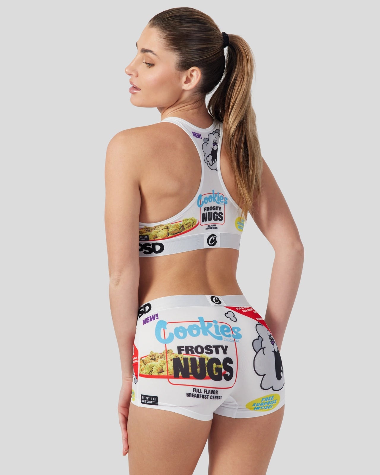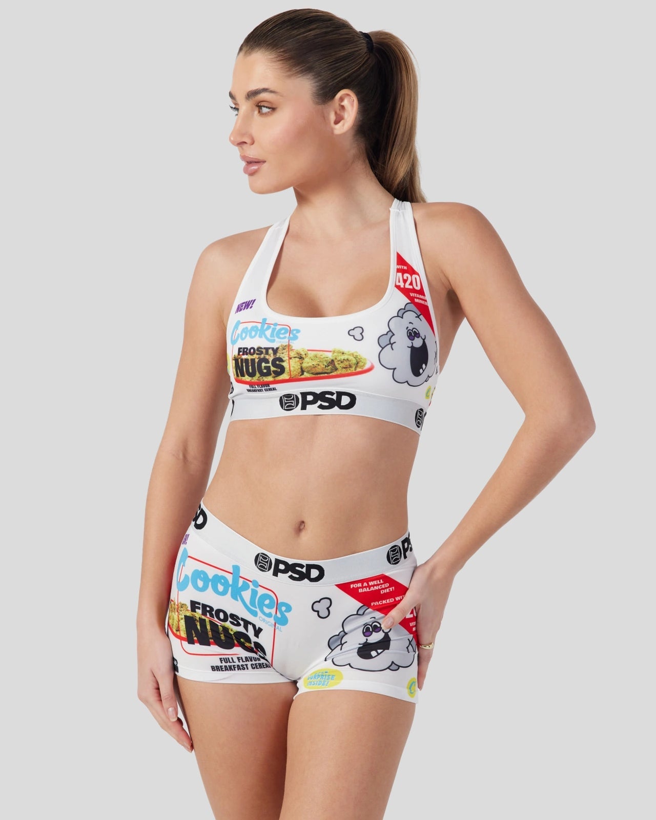 Like your favorite breakfast cereal but so much better. the newest drop from Cookies x PSD is full of earthy flavor. Made from a silky poly blend with a comfortable full coverage. keep-you-in fit. the Frosty Nugs boyshorts are perfect for everyday wear and working out.