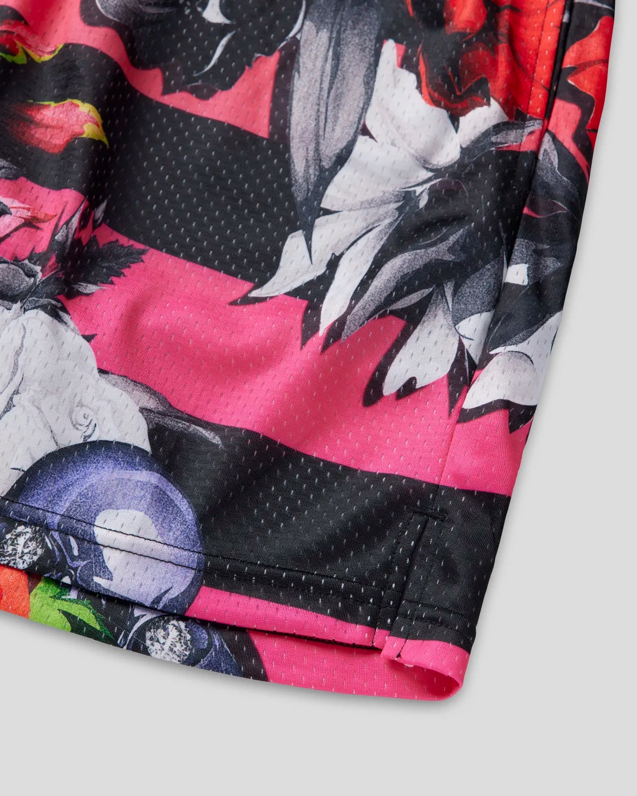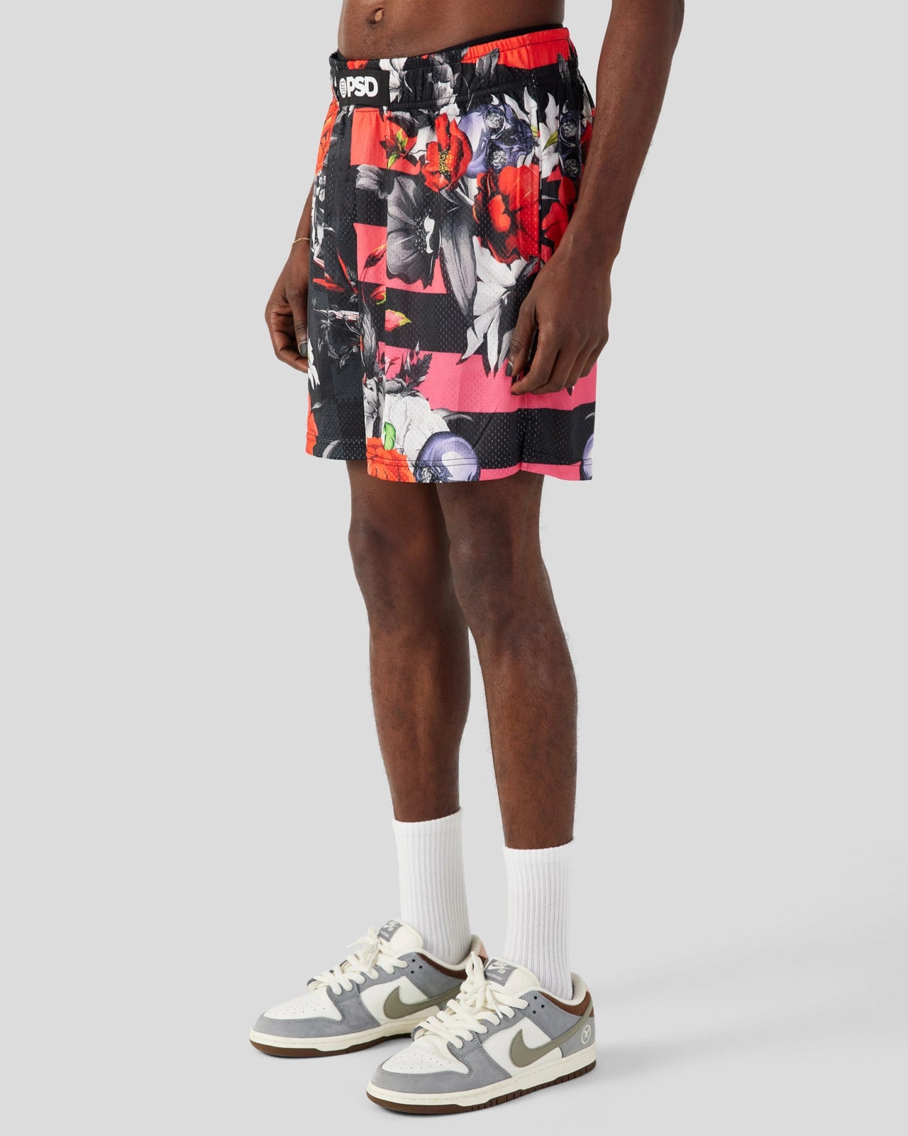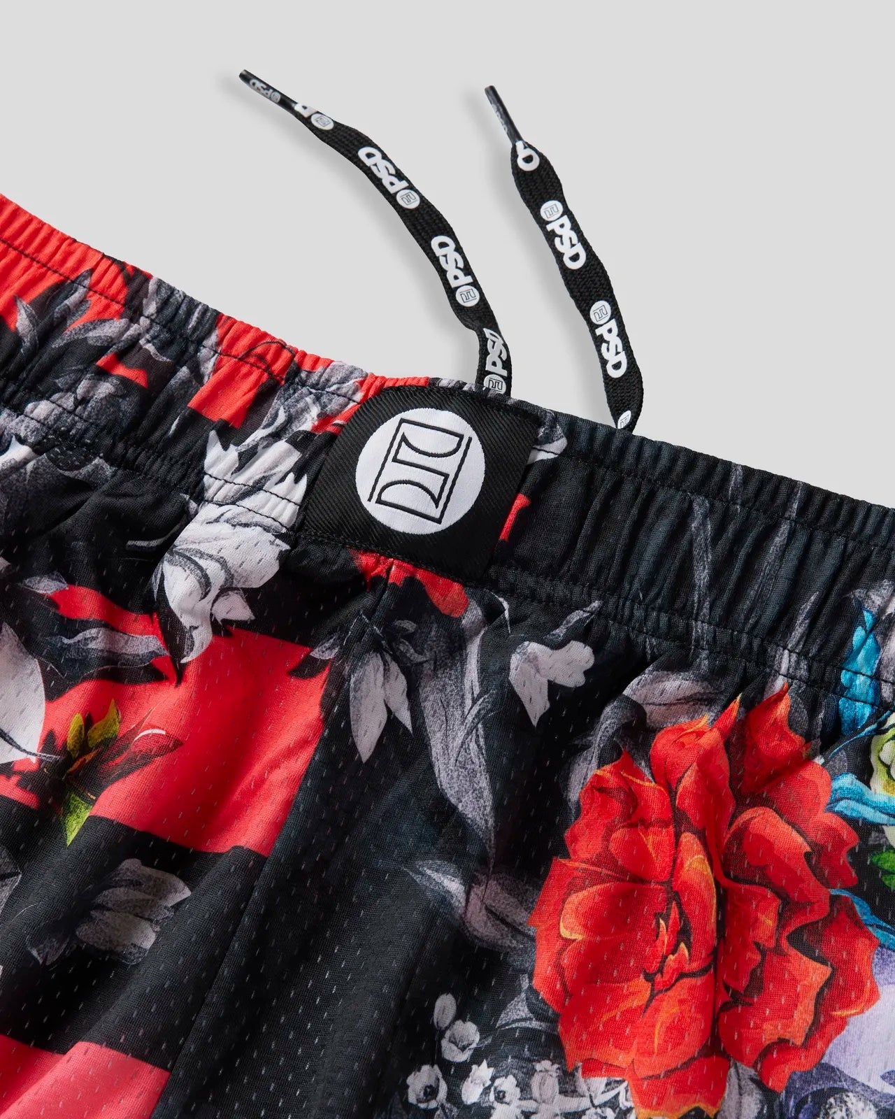 Floral print. but make it tough. The PSD Men’s Floral Demise Active Shorts feature an overlay of florals with stripes and checkers underneath. These shorts are made of lightweight and breathable mesh so you do your thing. whether you’re lounging at home or trying to stay cool on the court.