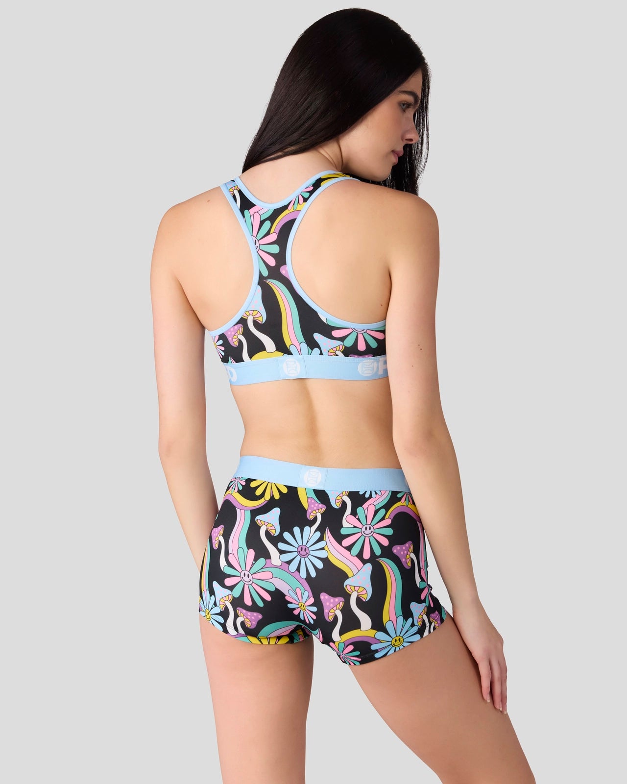 Ready to take a trip? The Happy Shrooms Boy Short is made from a silky poly blend with a comfortable full coverage. keep-you-in fit. The PSD boy shorts are perfect for everyday wear and working out.
