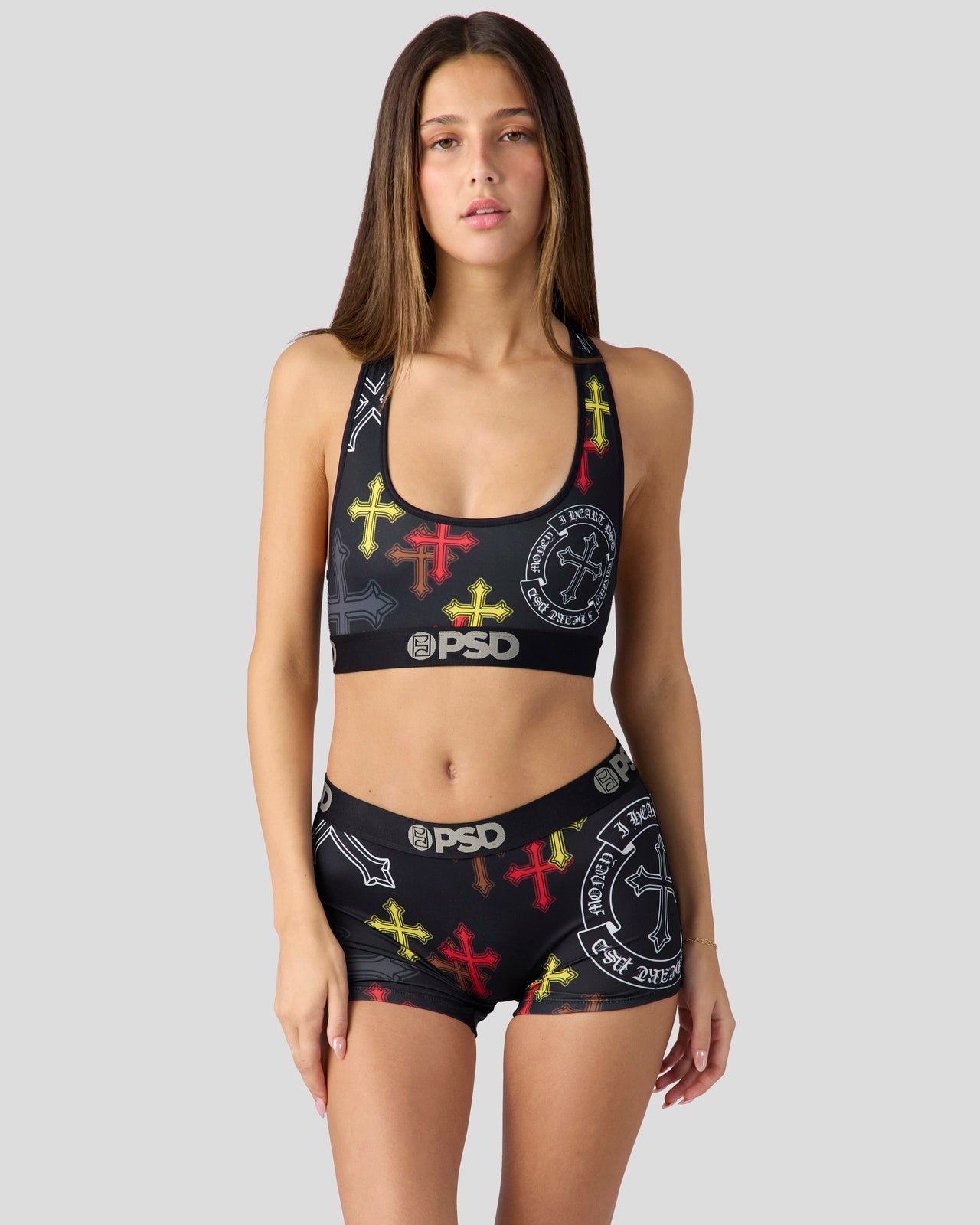 The Heart PSD Boy Short is made from a silky poly blend with a comfortable full coverage. keep-you-in fit. The PSD boy shorts are perfect for everyday wear and working out.