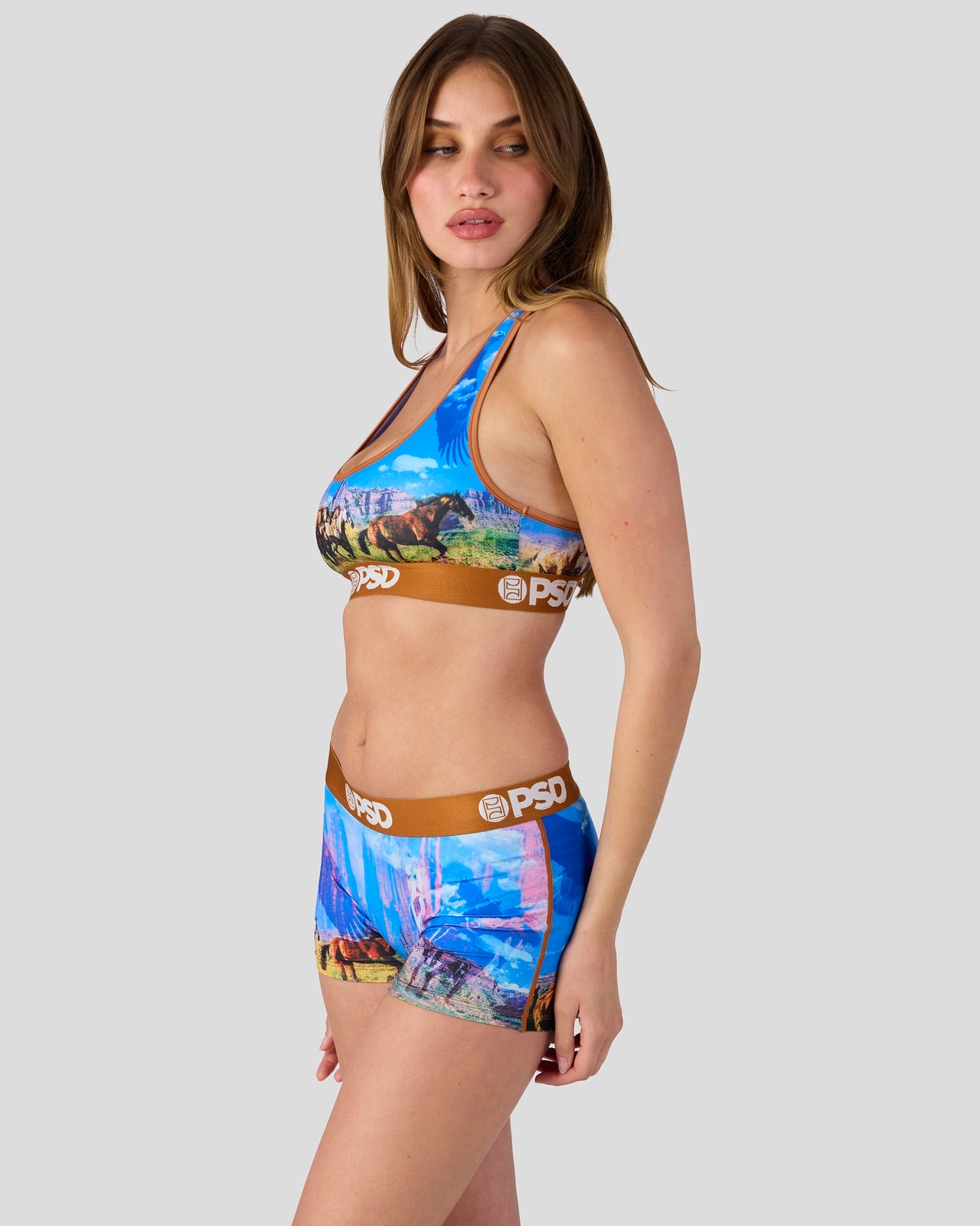 Run wild and free in this new women’s style. The Home on the Range Boy Short is a sweet new style made from a silky poly blend with a comfortable full-coverage fit perfect for everyday wear or working out.