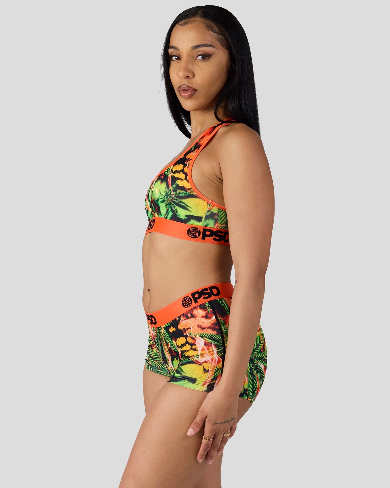 The Kush Dye Sports Bra is made from a silky poly blend that’s breathable yet slightly compressive. bringing you the comfort and support you need for everything you get into.