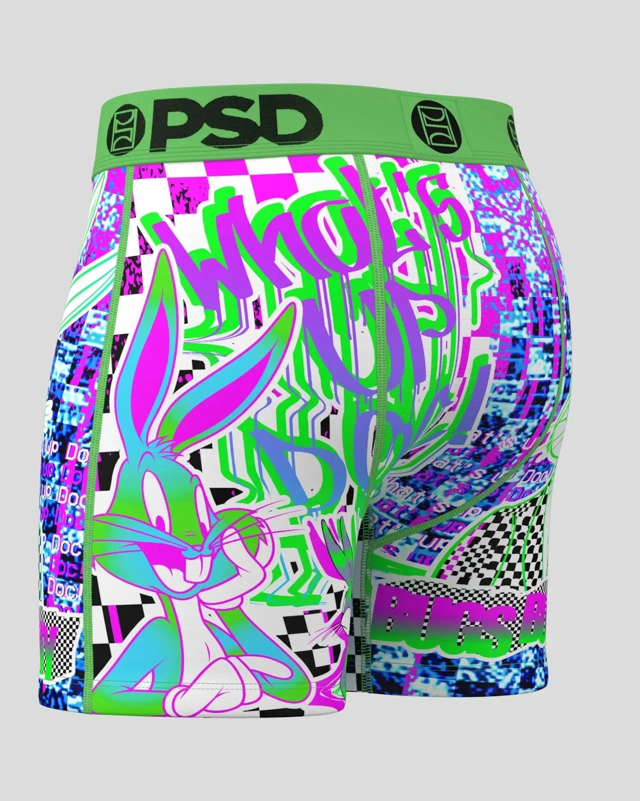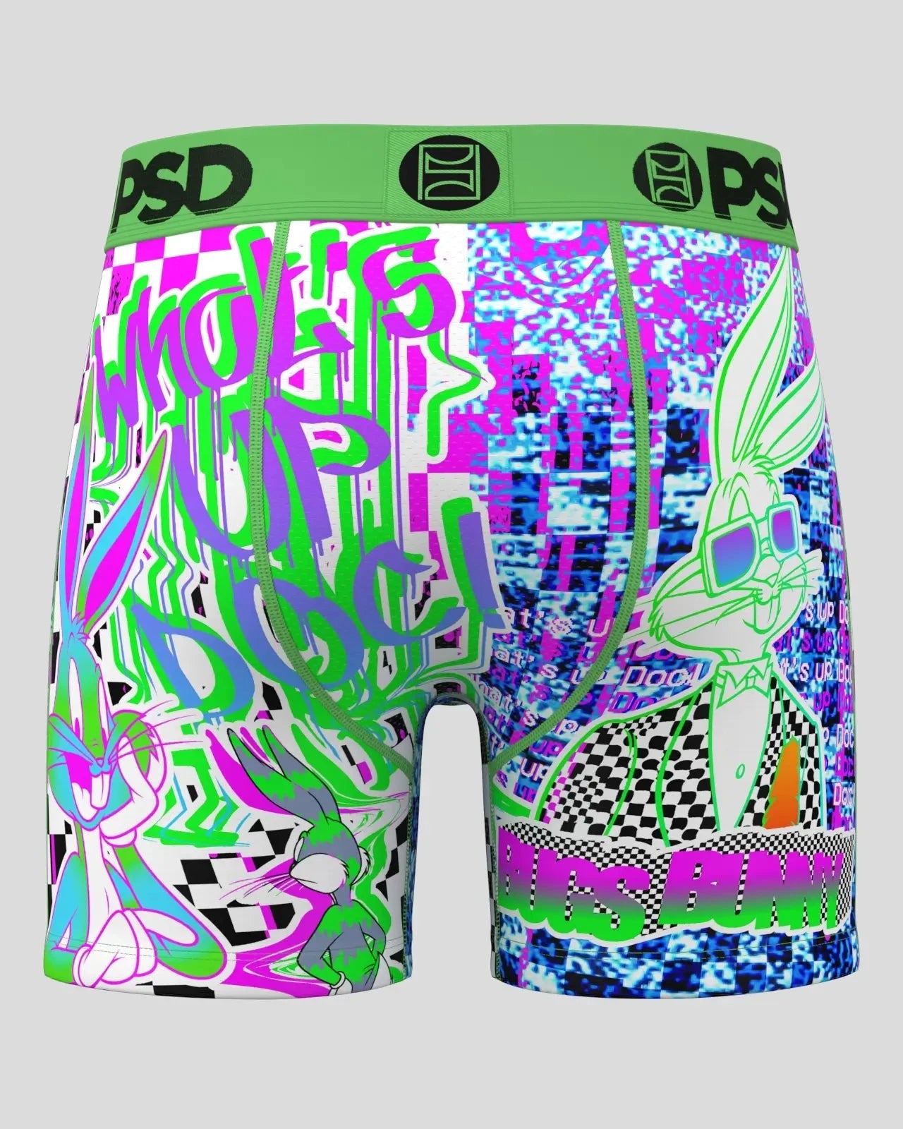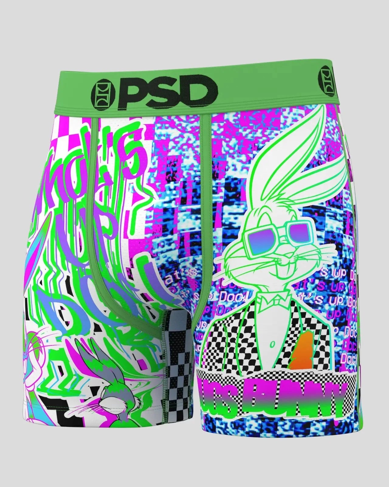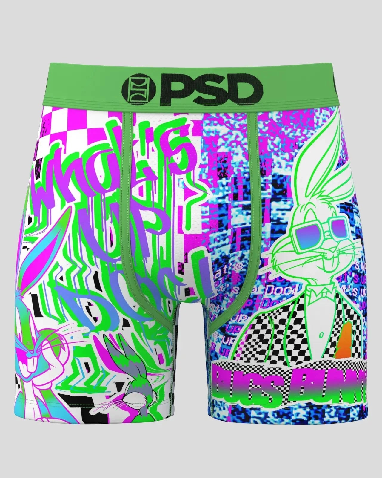 Bugs goes digital with this pair from Looney Tunes x PSD. The Bugs Glitch briefs include our ultra-comfortable Signature WaistBand. a breathable MicroMesh pouch. and four-way stretch. The PSD 5 Mid Length Briefs won’t roll or ride and were built for everything. from everyday wear to your toughest workouts.