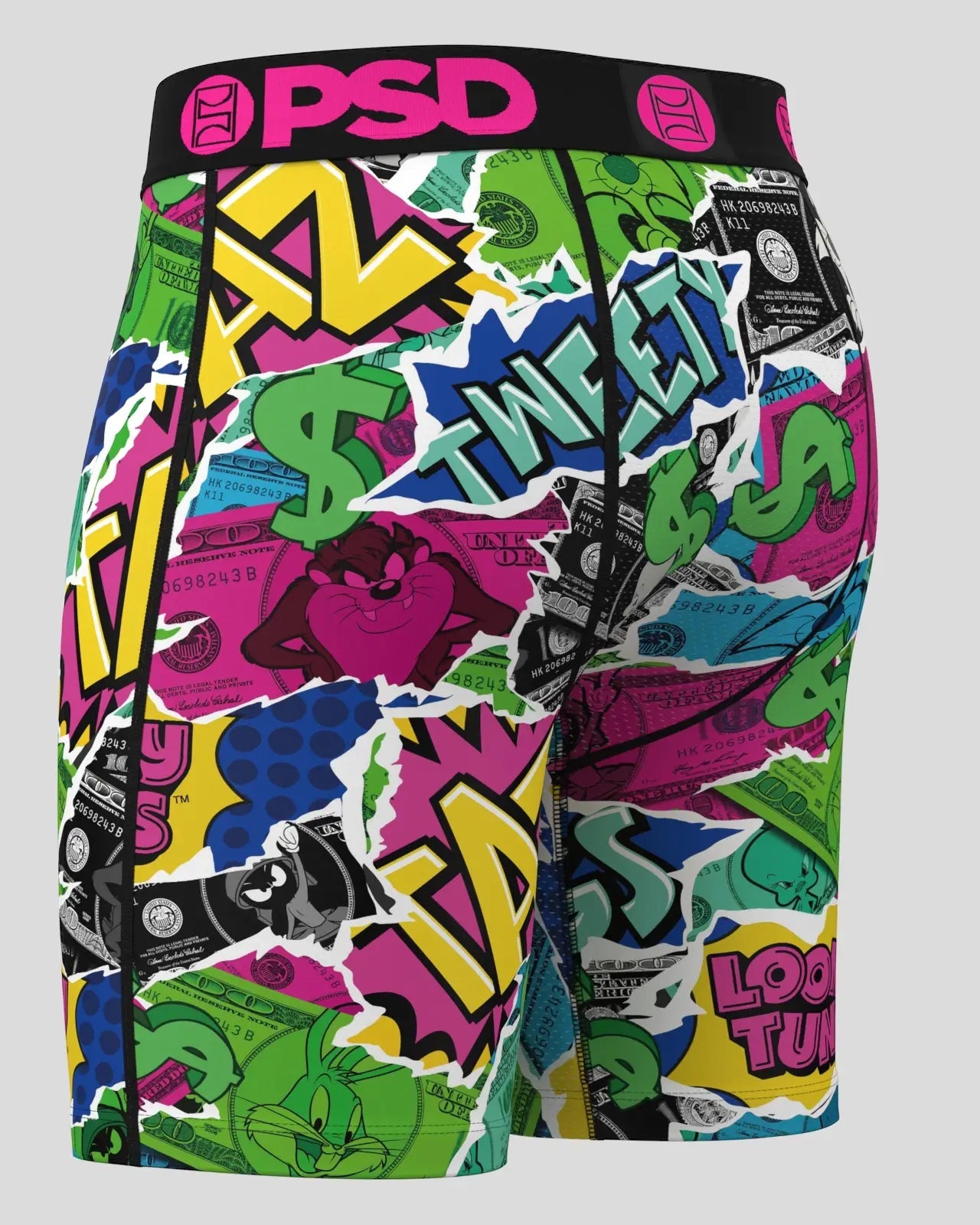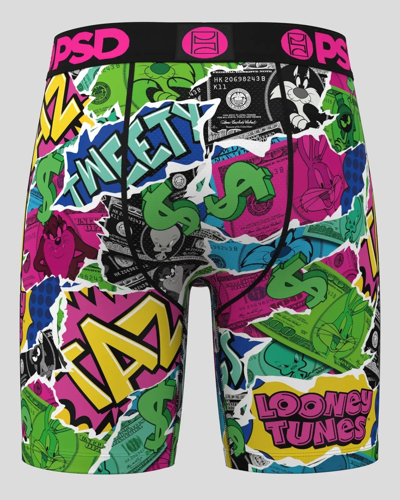 Get your Bugs bag with this new money-themed look from Looney Tunes x PSD. The Looney Money briefs include our ultra-comfortable Signature WaistBand. a breathable MicroMesh pouch. and four-way stretch. The PSD 7 Standard Length Briefs won’t roll or ride and were built for everything. from everyday wear to your toughest workouts.