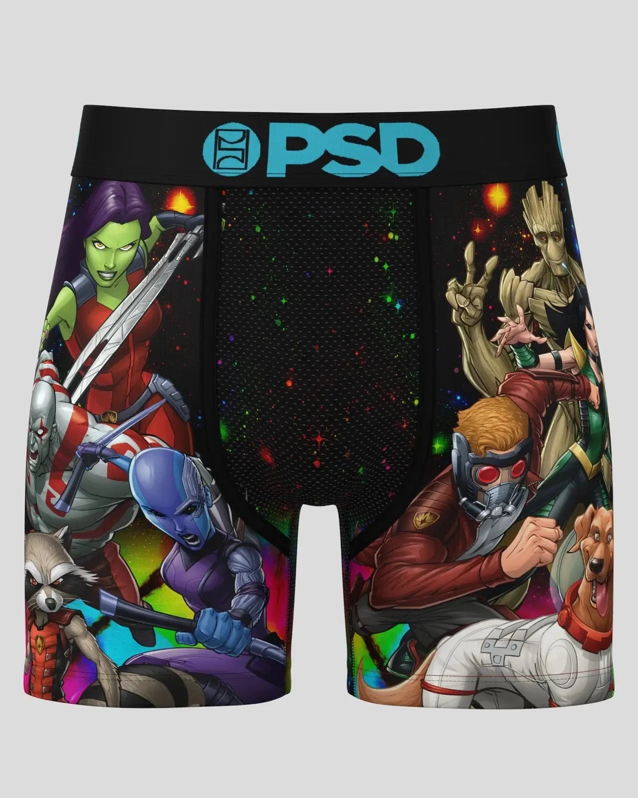 New from Marvel. suit up with the Guardians of the Galaxy and take your underwear game to another universe. Featuring Star-Lord. Rocket. Groot. and the whole crew. the GOTG Gang briefs include our ultra-comfortable Signature WaistBand. a breathable MicroMesh pouch. and four-way stretch. The PSD 5 Mid Length Briefs won’t roll or ride and were built for everything. from everyday wear to your toughest workouts.