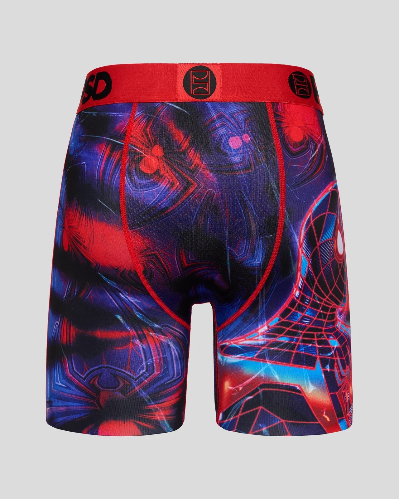 Enter another universe with the Miles Morales briefs. With four-way stretch. a breathable MicroMesh pouch. and durable flatlock stitching. these briefs were built to hold up for everything from everyday wear to the toughest workouts.