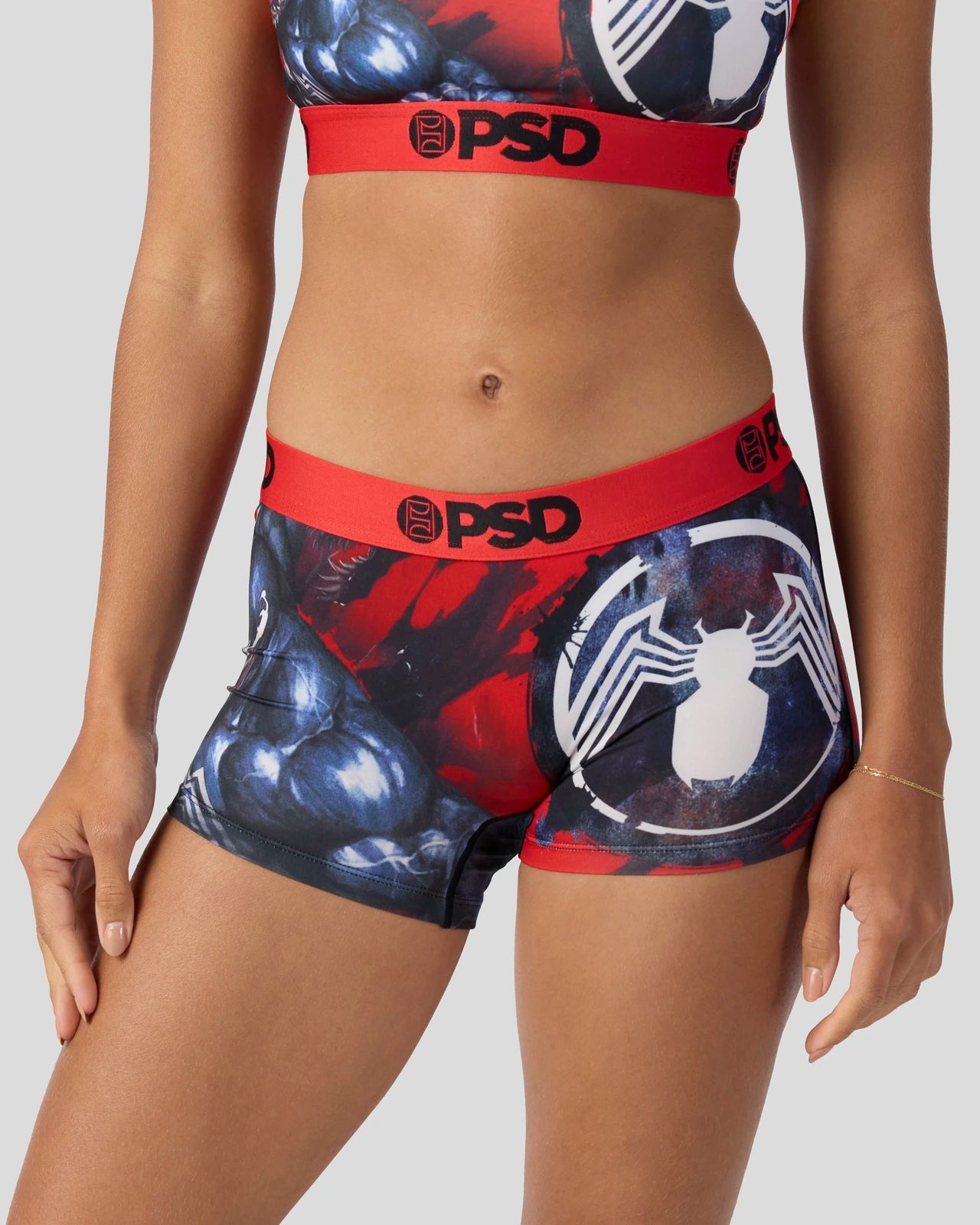 Warning: You might create a symbiotic relationship with this new Marvel look. The Venom Boy Short is made from a silky poly blend with a comfortable full coverage. keep-you-in fit. The PSD boy shorts are perfect for everyday wear and working out.