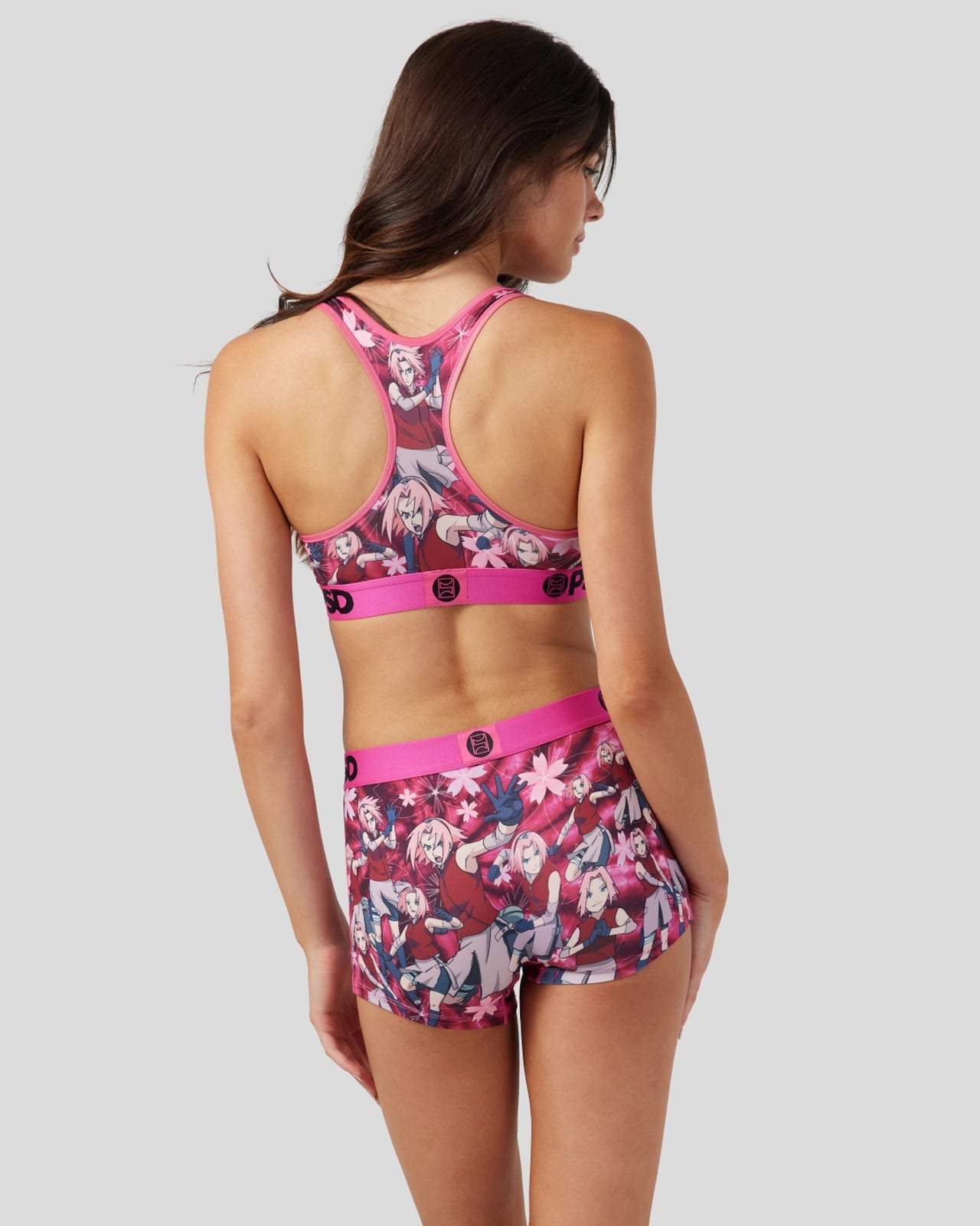 Introducing the newest drop from Naruto x PSD. The Sakura Clone Sports Bra features Sakura Haruno ready for battle along with cherry blossoms and a tie-dye background. Made with our silky poly blend. this bra is breathable yet slightly compressive. bringing you the comfort and support you need for everything you get into.
