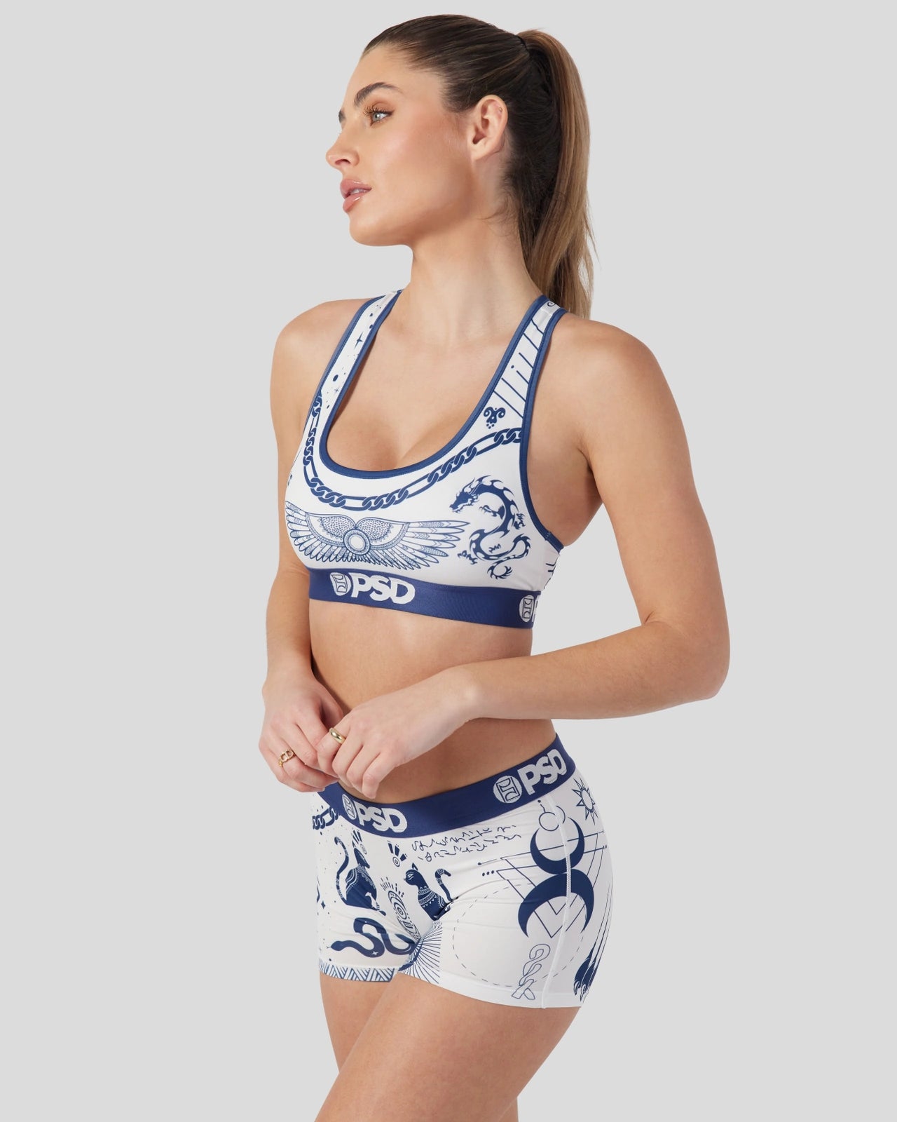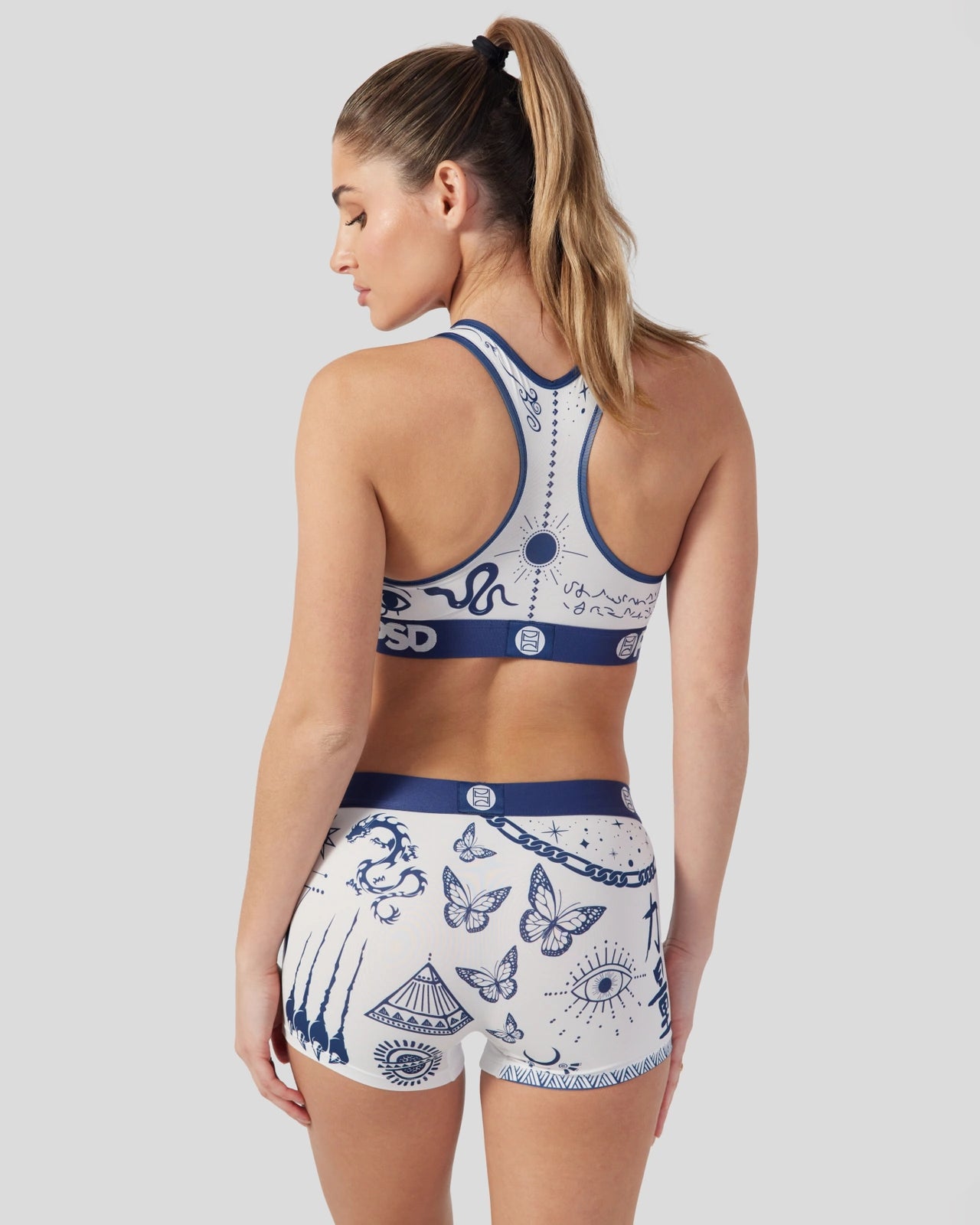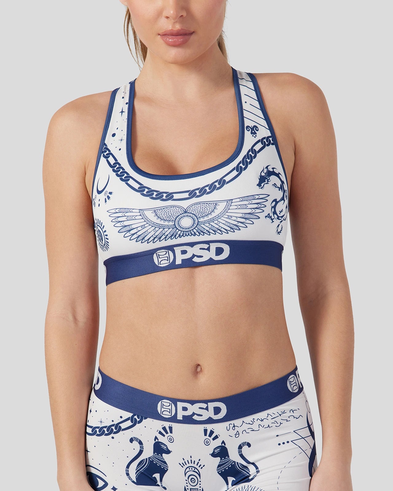Like getting a whole collection of tattoos. without the commitment. Featuring a vintage tattoo print. the Pacific Tattoo Sports Bra is made from a silky poly blend and is breathable yet slightly compressive. bringing you the comfort and support you need for everything you get into.