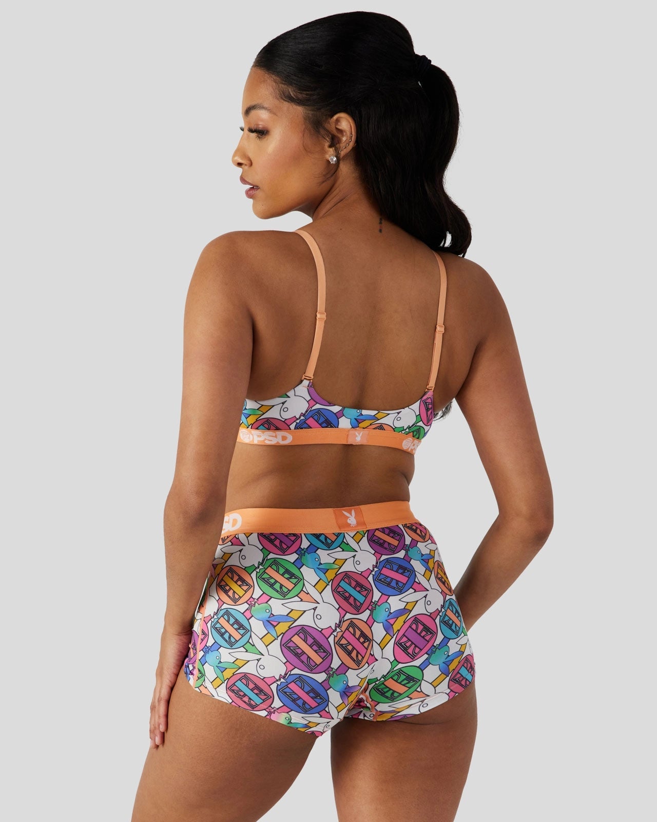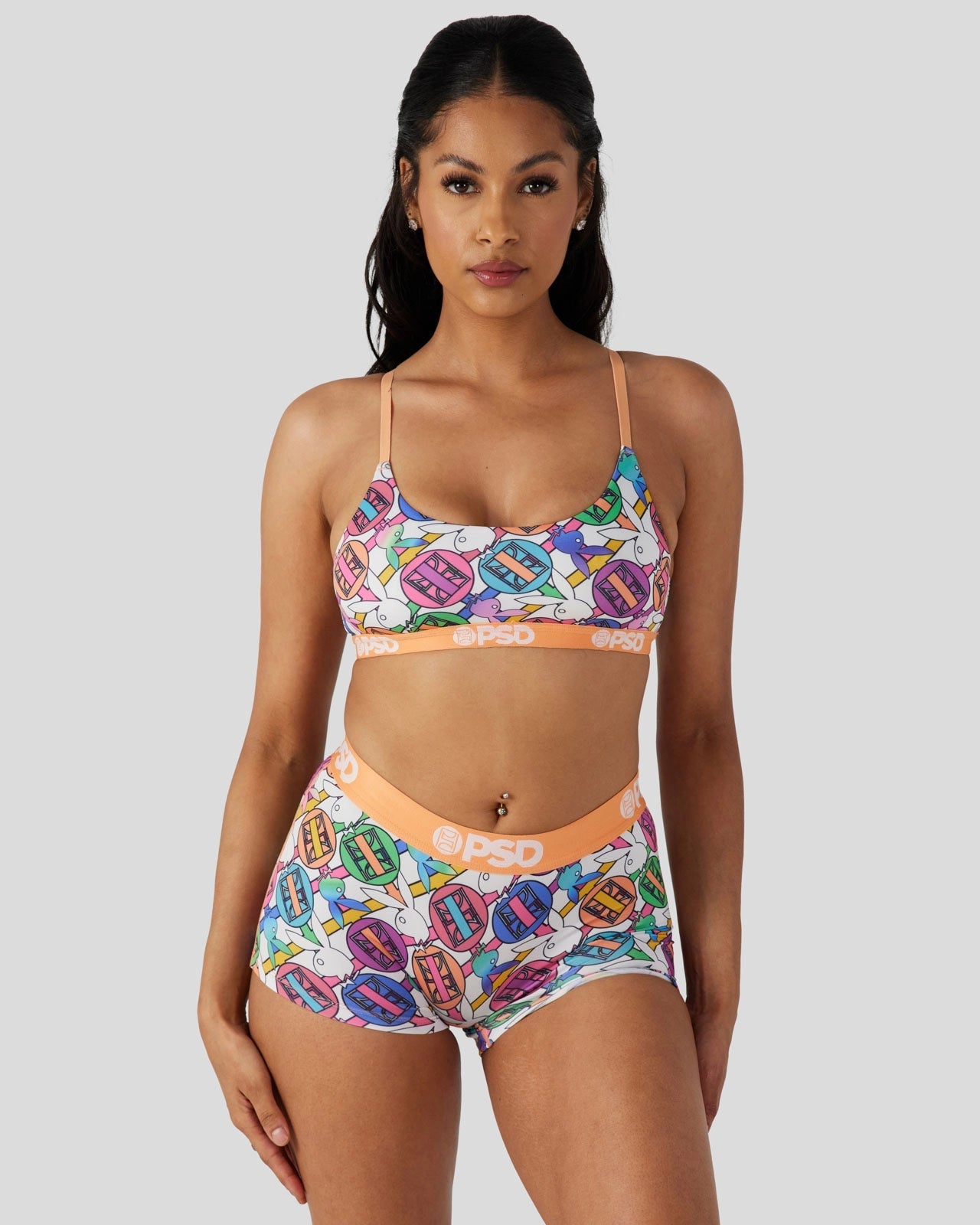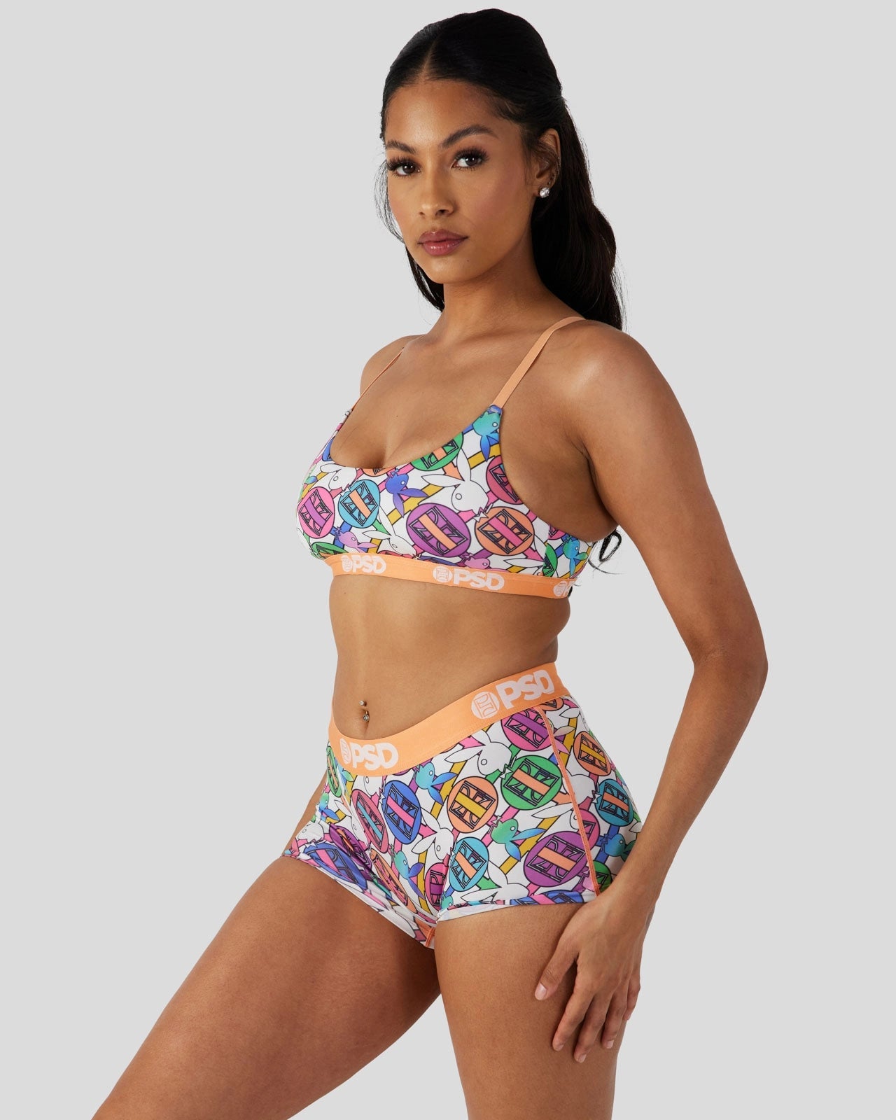 Pretty in pastel. the latest from Playboy x PSD is the perfect way to add some spring to your intimates drawer. Made of our silky poly blend. the PSD Geo Scoop Bralette almost feels like you’re not wearing a bra at all. It’s fully lined and features include adjustable straps. a cute scoop neckline. and a soft microfiber band that won’t ride or rub.
