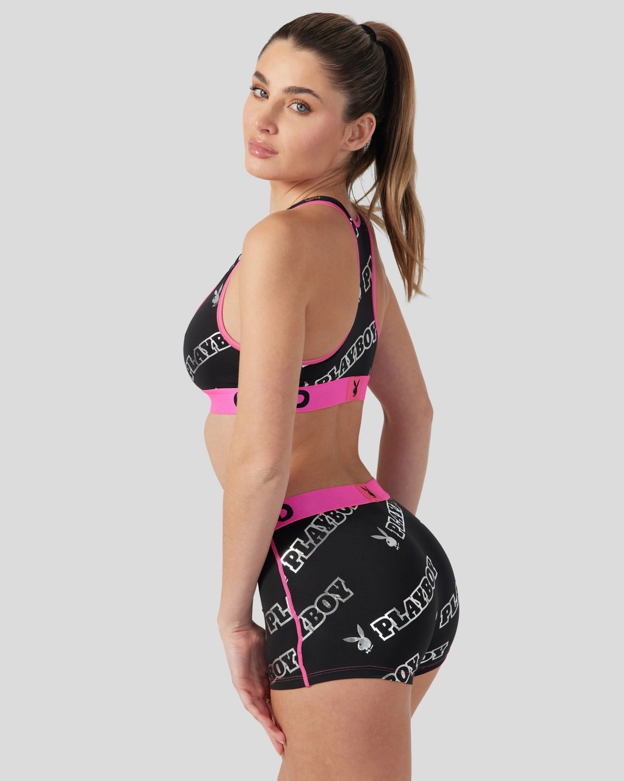 Featuring silver foil lettering and bright pink trim. you’ll definitely stand out in this new drop from Playboy x PSD. The Gleam Sports Bra is made from a silky poly blend and is breathable yet slightly compressive. bringing you the comfort and support you need for everything you get into.