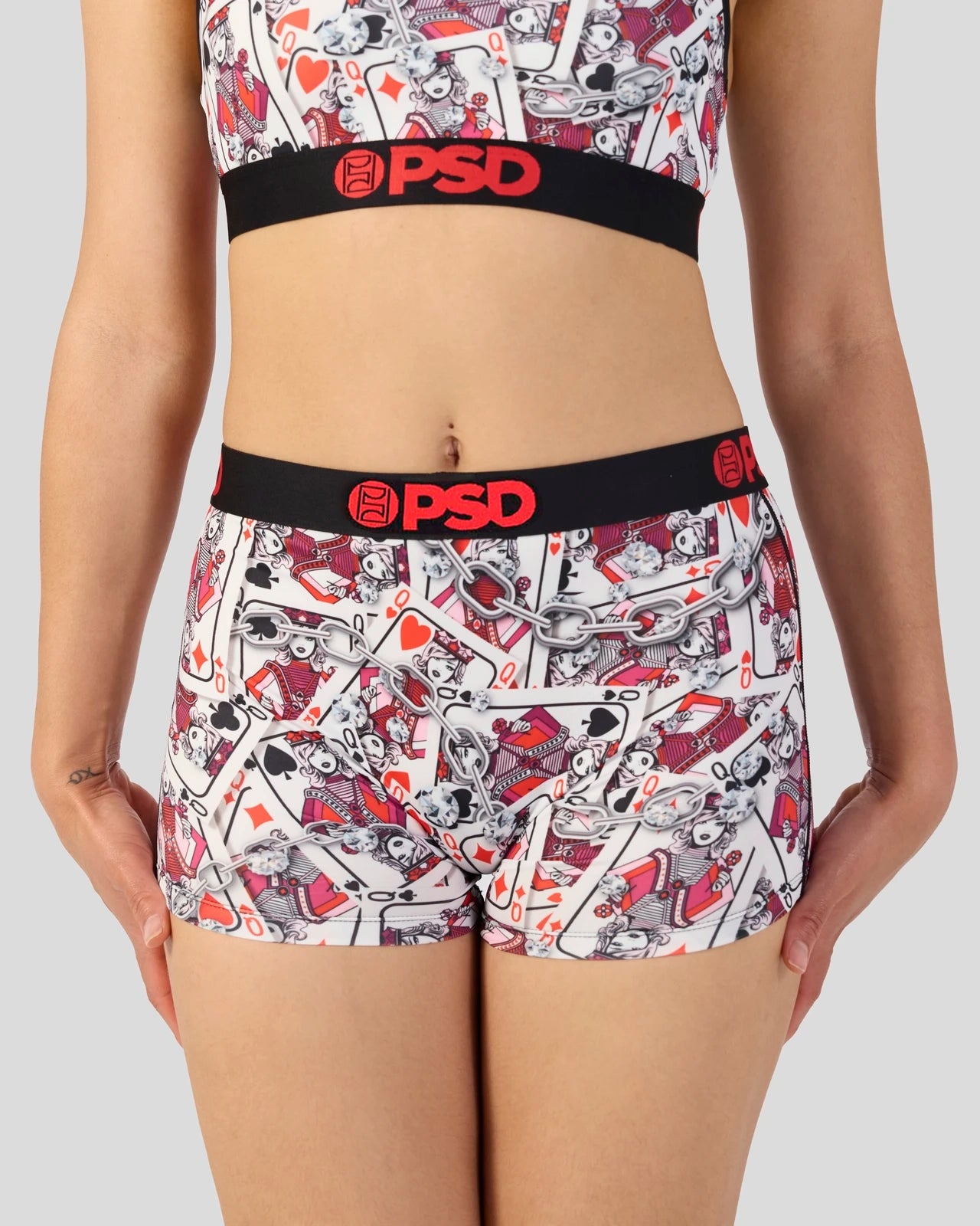 Ace your look with this new women’s style. The Queen Sh*t Boy Short is made from a silky poly blend with a comfortable full coverage. keep-you-in fit. The PSD boy shorts are perfect for everyday wear and working out.