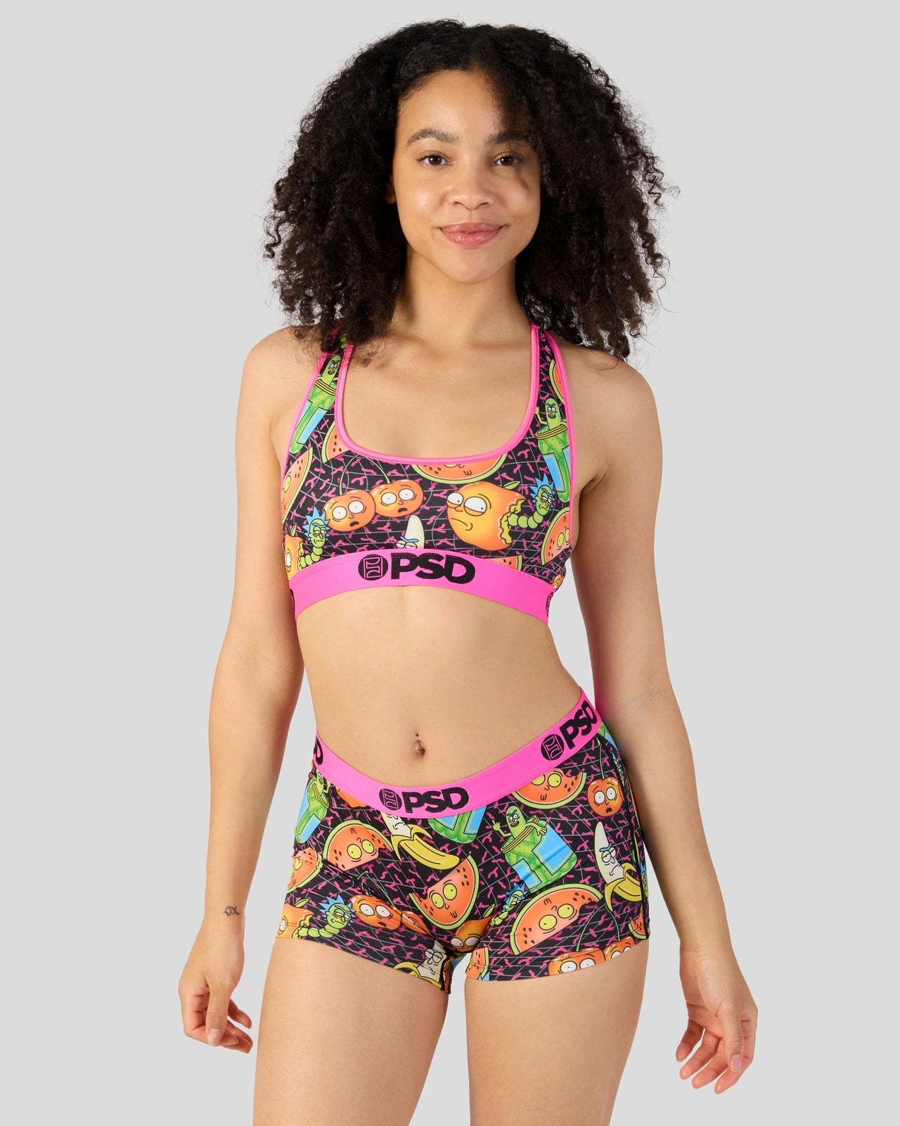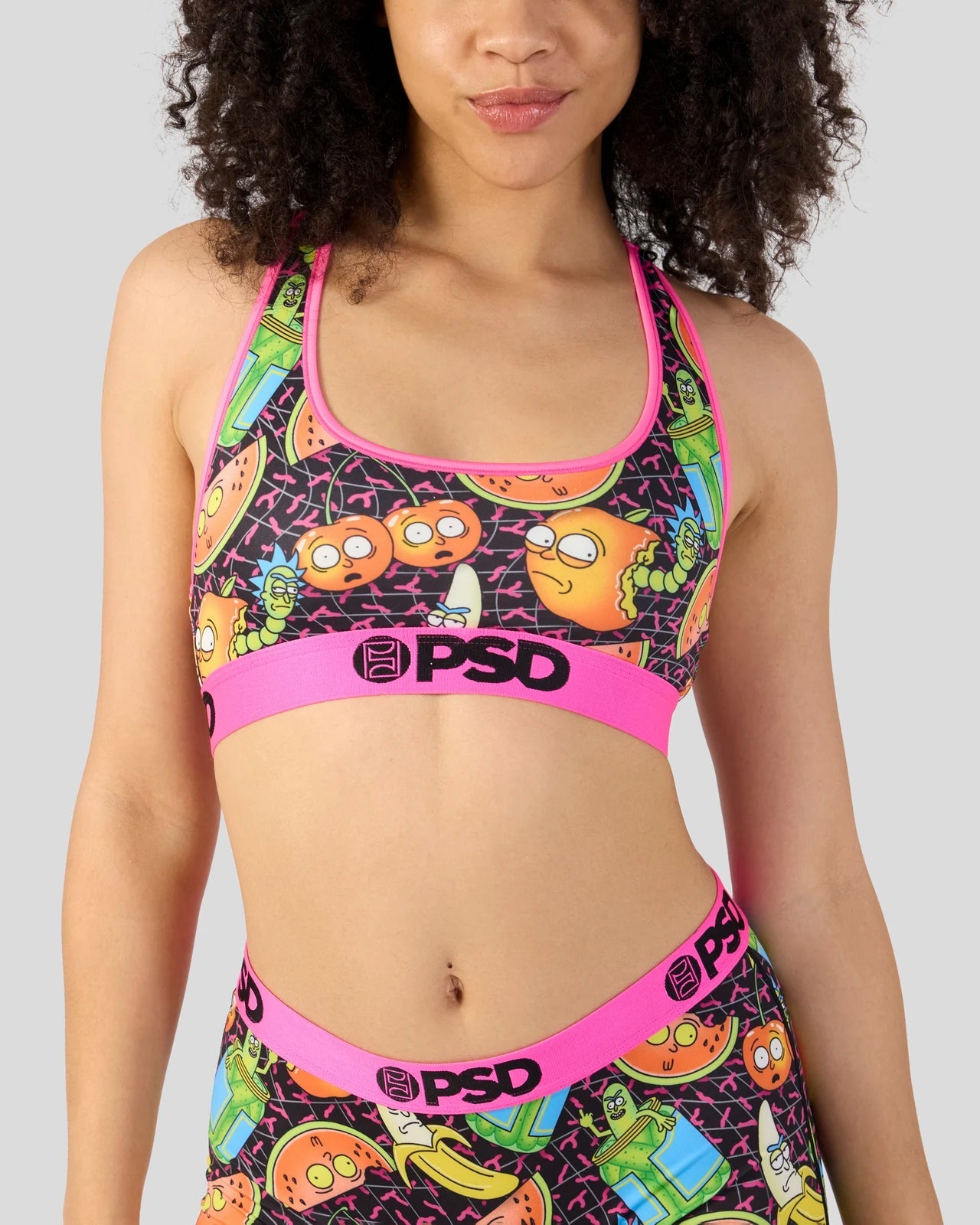 When it comes to Rick & Morty. you never know what they’ll get up to next. The Fruity Sports Bra is made from a silky poly blend and is breathable yet slightly compressive. bringing you the comfort and support you need for everything you get into.