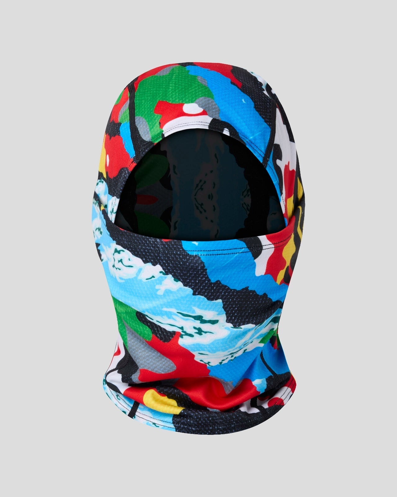 Featuring a colorful. mixed camo print. the Special Ops Hooded Mask pairs street style with cold-weather comfort. Made of a breathable poly blend brushed on the inside for an extra soft feel on the face. the mask has flat seams and can also be worn as a neck gaiter.