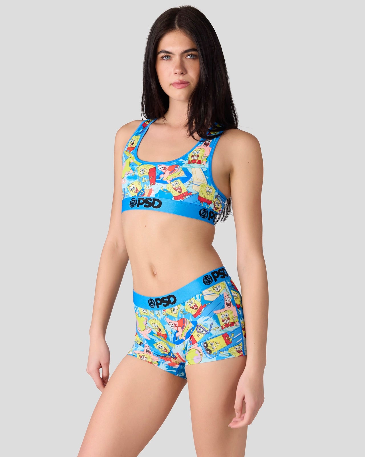 Surf’s up in this new look from SpongeBob SquarePants x PSD! The Surfin’ Boy Short is made from a silky poly blend with a comfortable full coverage. keep-you-in fit. The PSD boy shorts are perfect for everyday wear and working out.