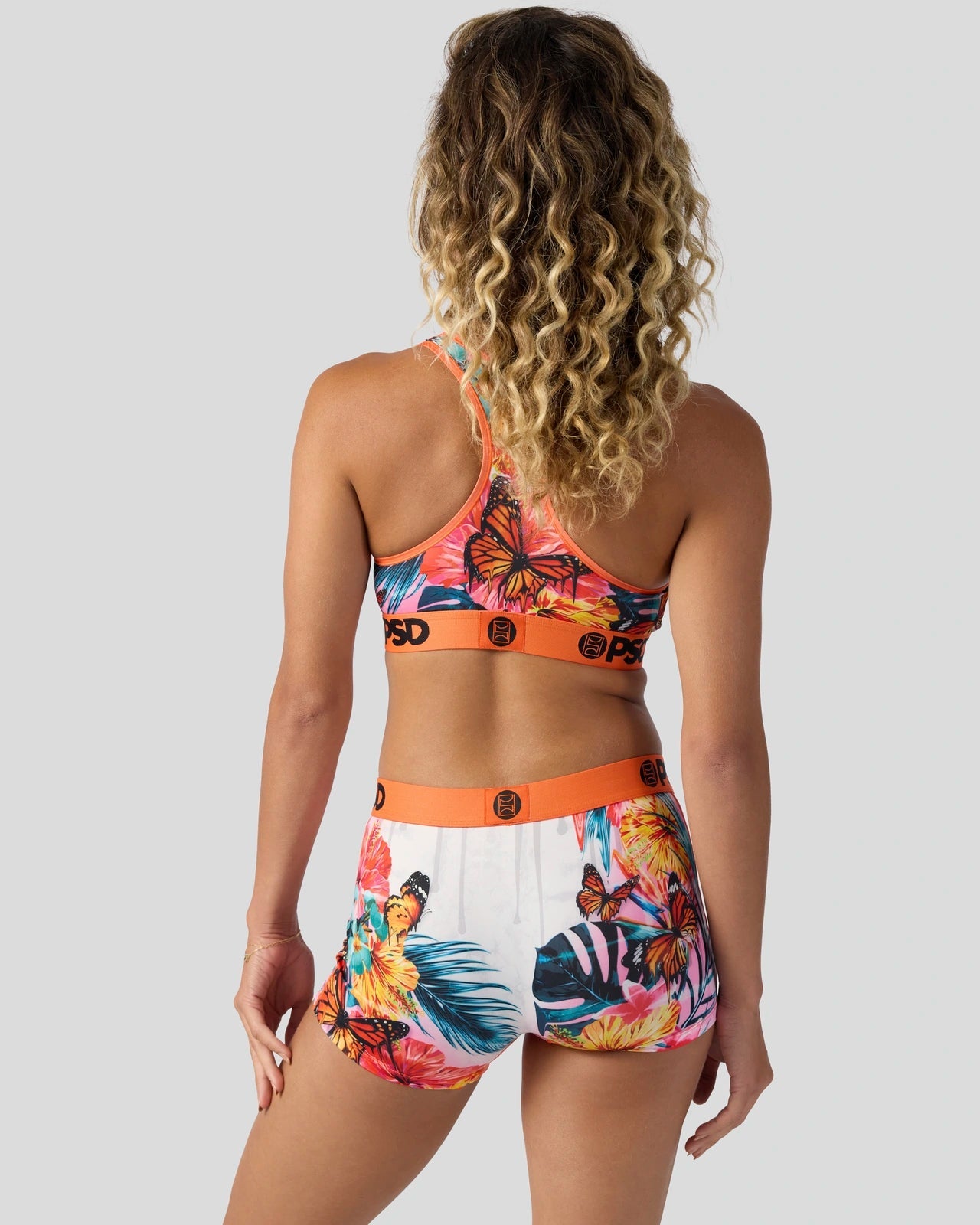 Feel like you’re on vacation in this island-inspired print. The Tropic Melt Boy Short is made from a silky poly blend with a comfortable full coverage. keep-you-in fit. The PSD boy shorts are perfect for everyday wear and working out.