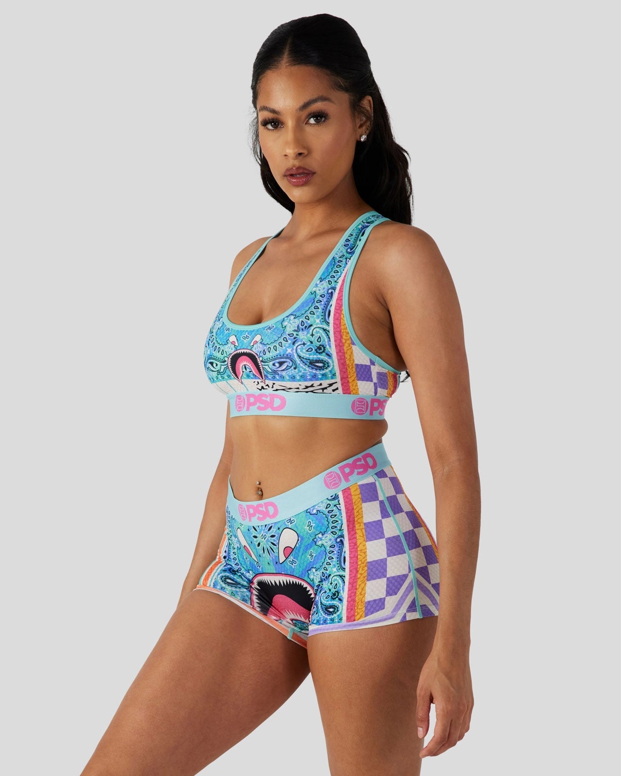 The Warface Fest Sports Bra is like a festival with all our favorite prints headlining. including bandana. checkers. stacks of cash. and more. Made with our silky poly blend. this bra is breathable yet slightly compressive. bringing you the comfort and support you need for everything you get into.