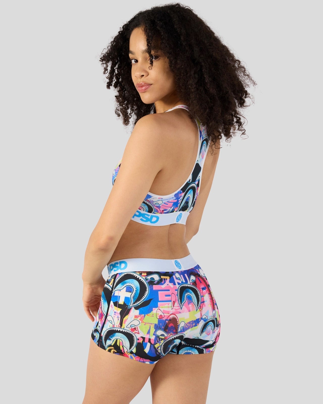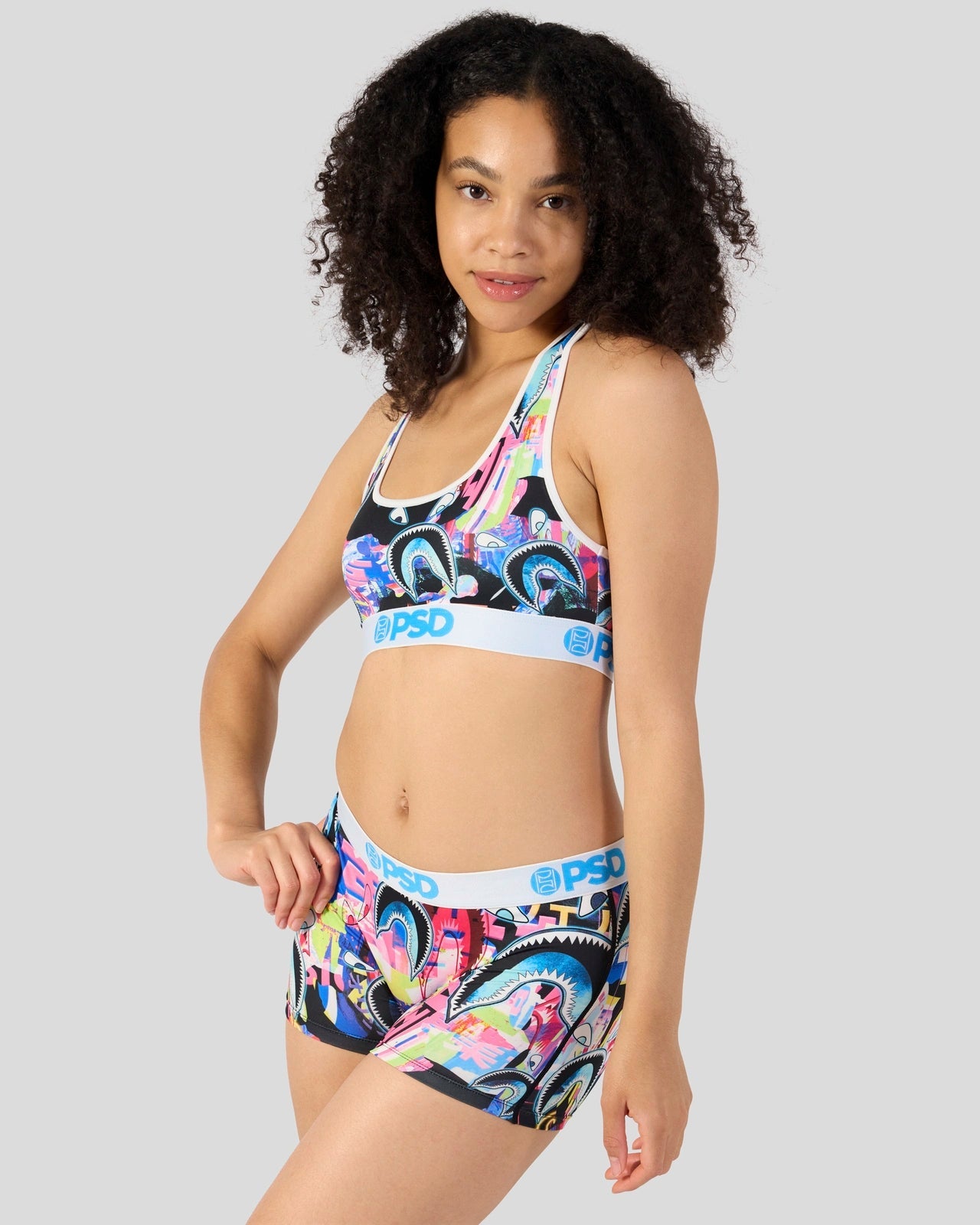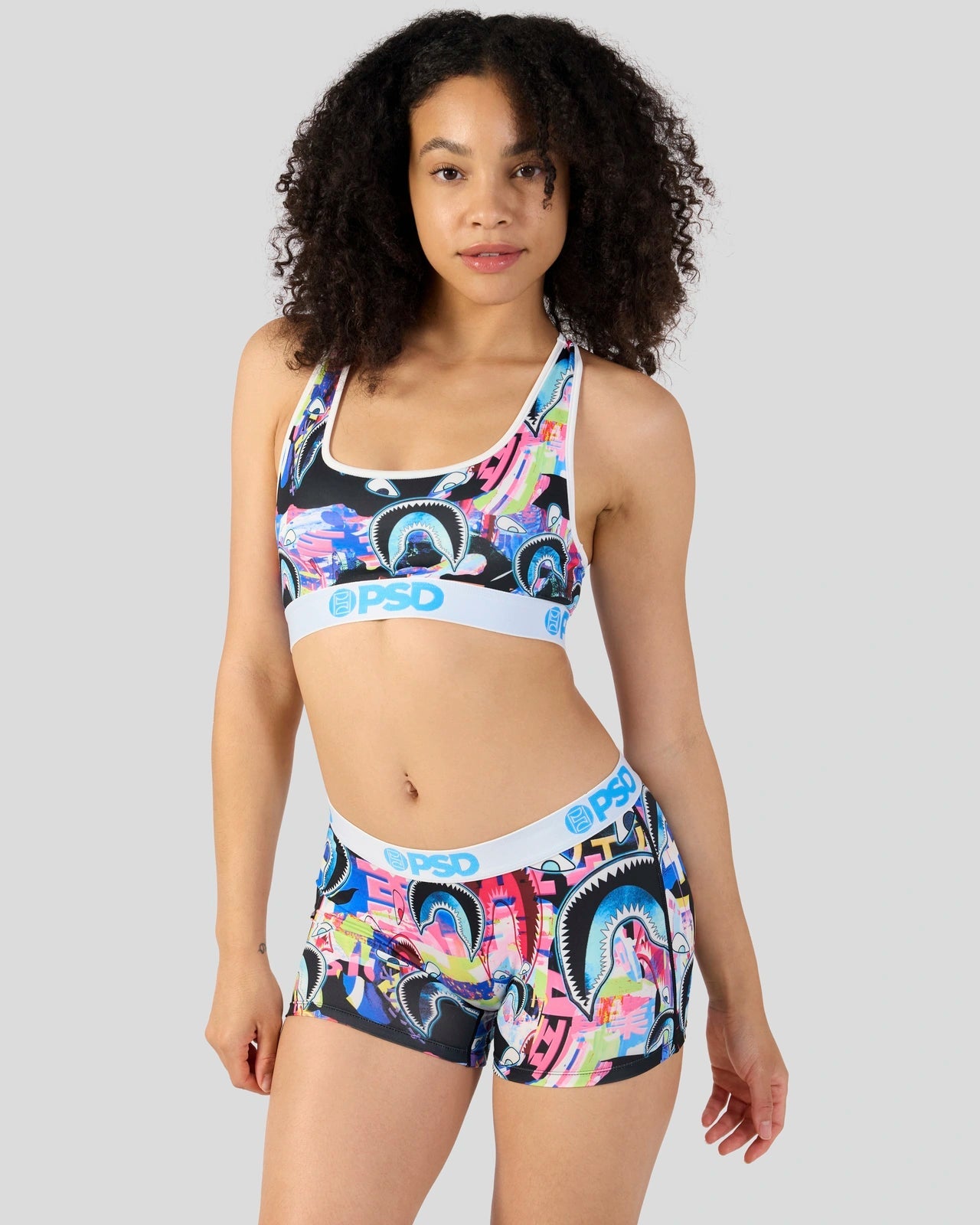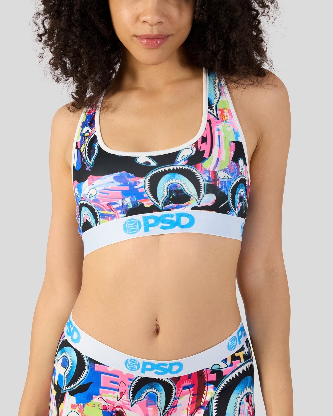 The Warface Shark Glitch Sports Bra is made from a silky poly blend and is breathable yet slightly compressive. bringing you the comfort and support you need for everything you get into.