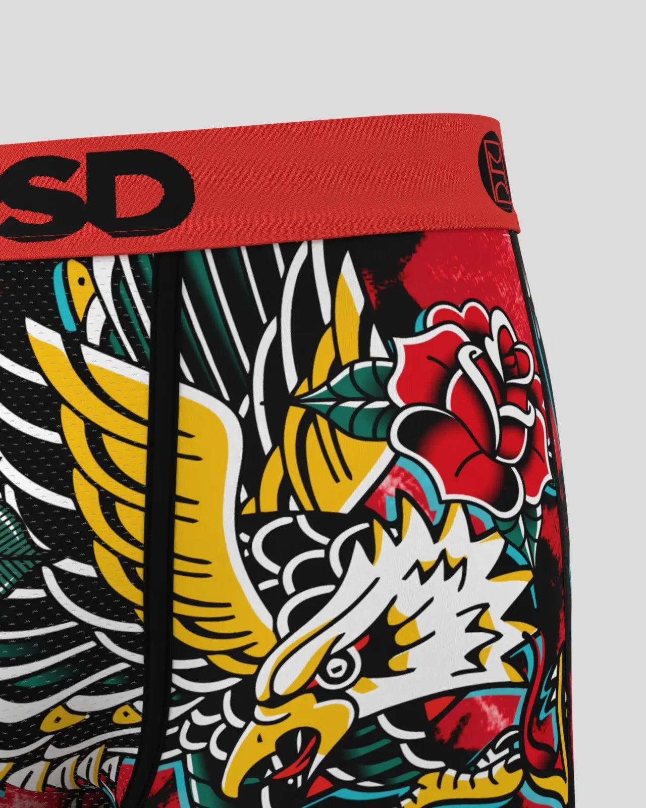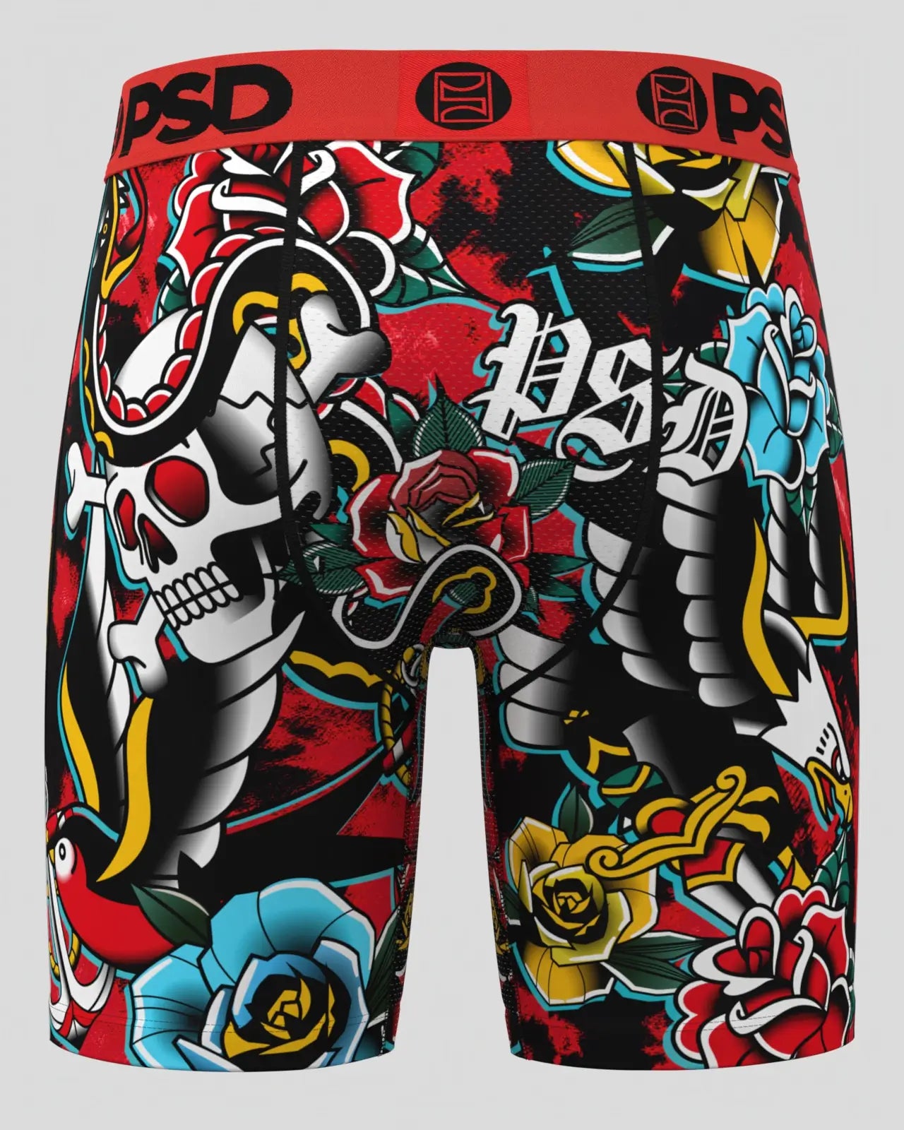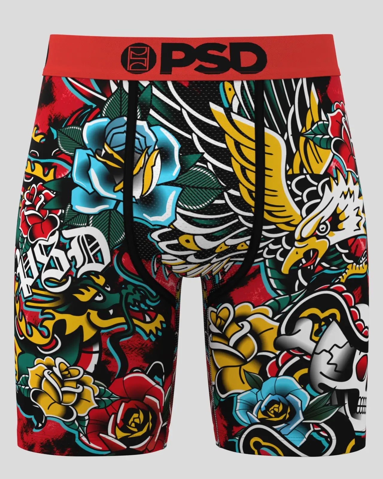 Featuring a vintage tattoo-inspired design. the Winged Spirit briefs include our ultra-comfortable Signature WaistBand. a breathable MicroMesh pouch. and four-way stretch. The PSD 7 Standard Length Briefs won’t roll or ride and were built for everything. from everyday wear to your toughest workouts.